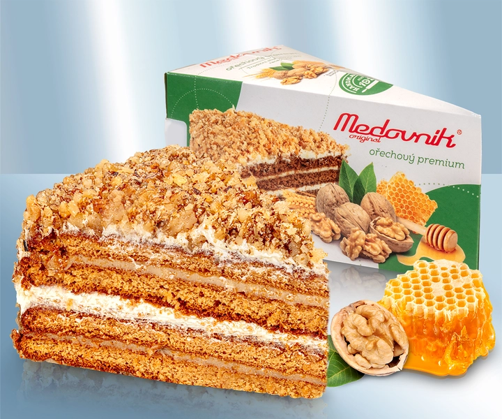Торт Медовик, оригинал Премиум с грецким орехом 0,145 кгТорт Медовик, оригинал Премиум с грецким орехом 0,145 кг